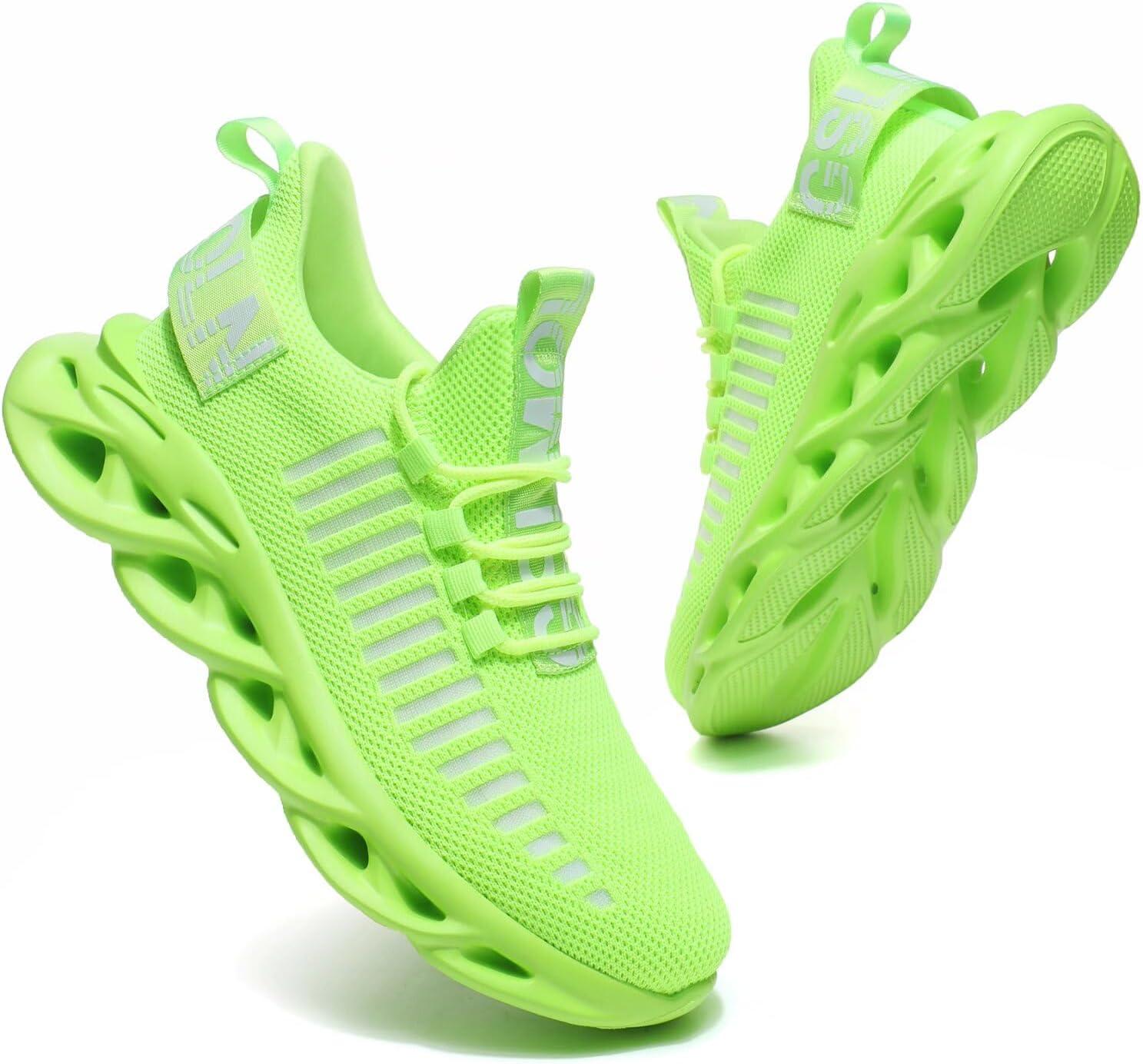 GSLMOLN Womens Walking Shoes Mesh Non Slip Gym Sports Casual Fashion Sneakers(Fluorescent/Green2)